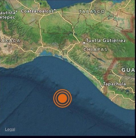 El sismo ocurrió a 211 kilómetros al suroeste de Ciudad Hidalgo, Chiapas
