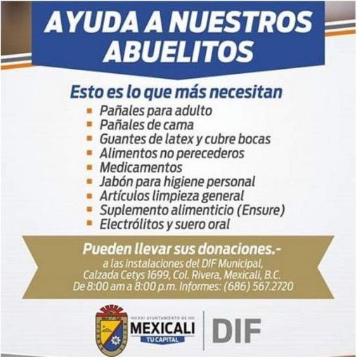 La dirección del DIF de Mexicali está solicitando la colaboración de la población con la donación de víveres para los ancianos que lograron ser rescatados del asilo ‘Hermoso Amanecer’.