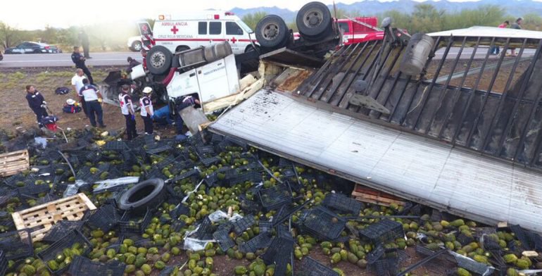Los hechos ocurrieron, se añadió en un comunicado, cuando elementos de la División de Seguridad Regional recibieron el reporte del incidente ocurrido a la altura del kilómetro 137+000 de la carretera Altar-Sonoyta, tramo Caborca-Sonoyta, donde detectaron un tractocamión acoplado a semirremolque, el cual se encontraba volcado y su conductor había quedado prensado en el interior de la cabina.