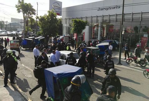 Un total de 26 unidades de mototaxi fueron remitidas al depósito vehicular y tres personas presentadas ante las autoridades competentes por resistirse a la autoridad, luego de un operativo para retirar estos vehículos en inmediaciones del Aeropuerto Internacional de la Ciudad de México (AICM), en la colonia Federal, delegación Venustiano Carranza.