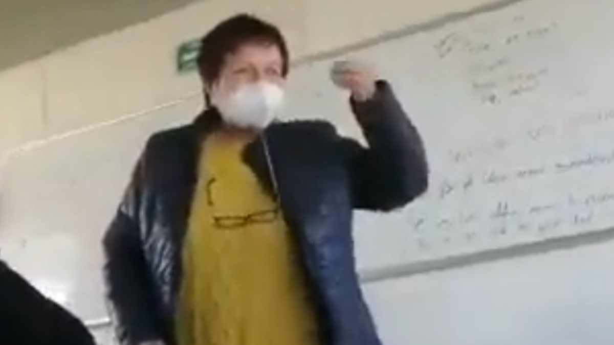 Ya ponte a trabajar, a hacer cosas útiles, que ya se le quite lo retrasado mental. Díselo. Yo sé cómo es eso. Tú no porque no eres tú. Es gente estúpida; no, de verdad, que no fue a la escuela, pero se comporta como idiota. Él no lo hace (señalando a un alumno), ustedes no lo hacen”, manifestó la docente, aparentemente refiriéndose a un alumno.