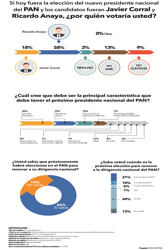 A dos días que inicie la campaña interna del PAN para renovar la dirigencia nacional, Parametría publicó la primera encuesta, la cual muestra el panorama actual en el blanquiazul.