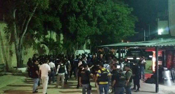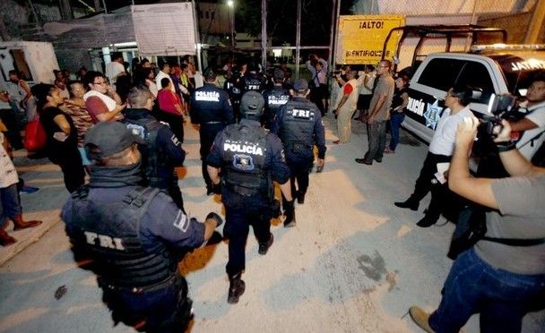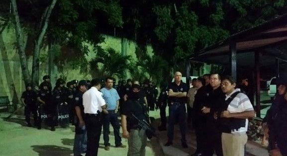 En los alrededores del penal se registró fuerte movilización de uniformados, captados buscando a presuntos reos entre la maleza de los alrededores del penal y en un amplio baldío con maleza ubicado sobre la avenida Nichupté.