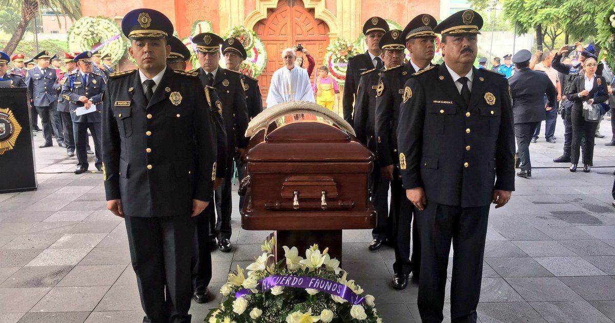 Cerca de mil policías capitalinos participaron en el cortejo fúnebre del oficial Pedro Reyes Magdalena, quien murió tras recibir un disparo
