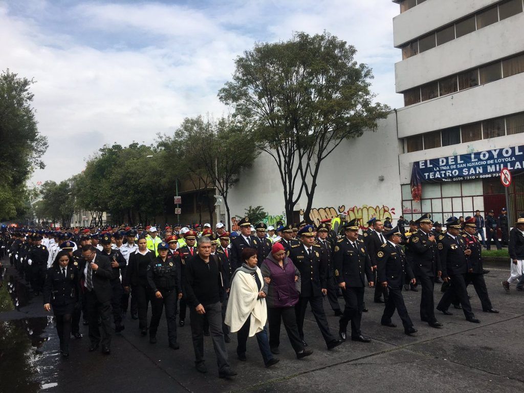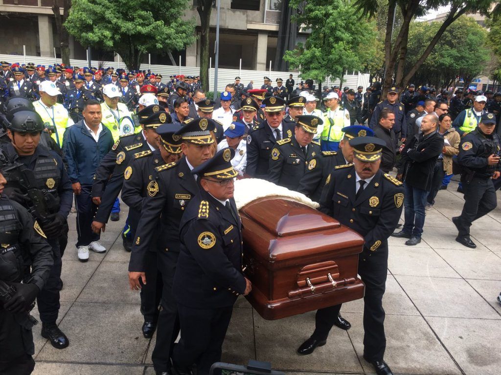 El cortejo encabezado por el secretario de Seguridad Pública de la capital, Hiram Almeida Estrada, partió alrededor de las 9:30 h del Servicio Médico Forense, ubicado en avenida Niños Héroes en la colonia Doctores delegación Cuauhtémoc.