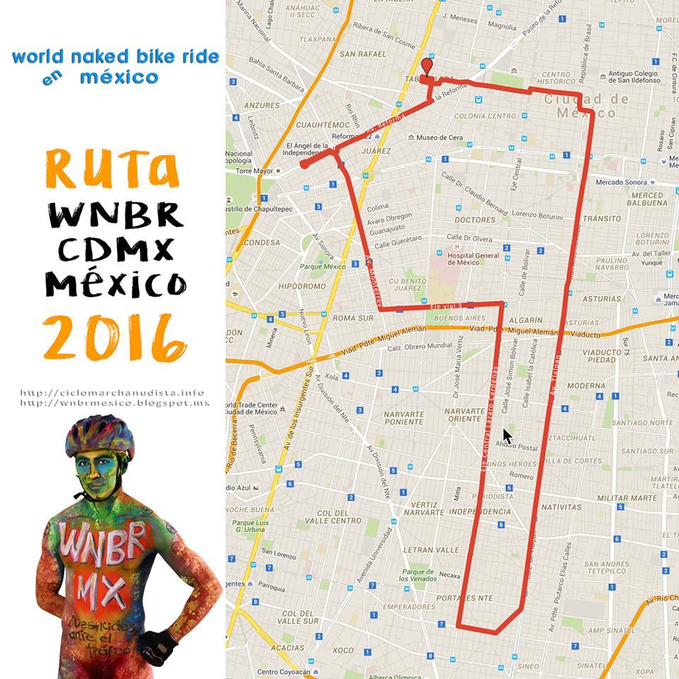 De acuerdo con los organizadores, se espera que participen 5 mil ciclistas y su ruta pasó por el Zócalo, Tlalpan, Municipio Libre, Eje Central, Avenida Monterrey, El Ángel, Insurgentes y regresar al Monumento a la Revolución.  La rodada forma parte del movimiento World Naked Bike Ride (WNBR).