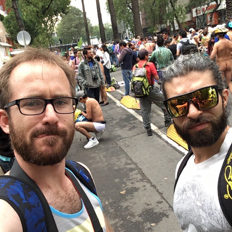 Tatuados, pintados, maquillados, con antifaces, con cascos, algunos pudorosos con calzón, de la tercera edad, jóvenes, solos, acompañados, otros desnudos, rasurados, peludos, unos más con el cuerpo completamente pintado, en su mayoría hombres partieron a las 12:38 h de este sábado en bicicletas de todos tamaños.