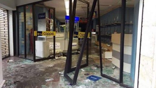 Otro de los comercios dañados fue la zapatería Azteca, la cual resultó dañada de las cortinas de hierro por los vándalos, quienes se llevaron parte de la mercancía.