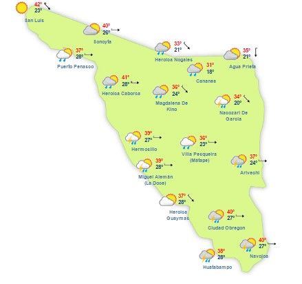 De acuerdo con el pronóstico del tiempo de Protección Civil, las lluvias continuarán en Hermosillo y varios municipios de Sonora.