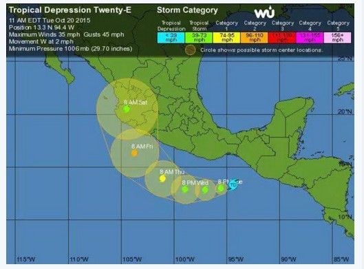 De incrementar su actividad, la depresión tropical 20-E evolucionará a tormenta Patricia.