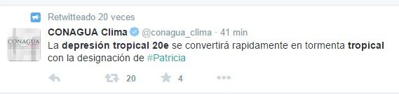 Se forma depresión tropical 20-E en el Pacífico - tuit-pati
