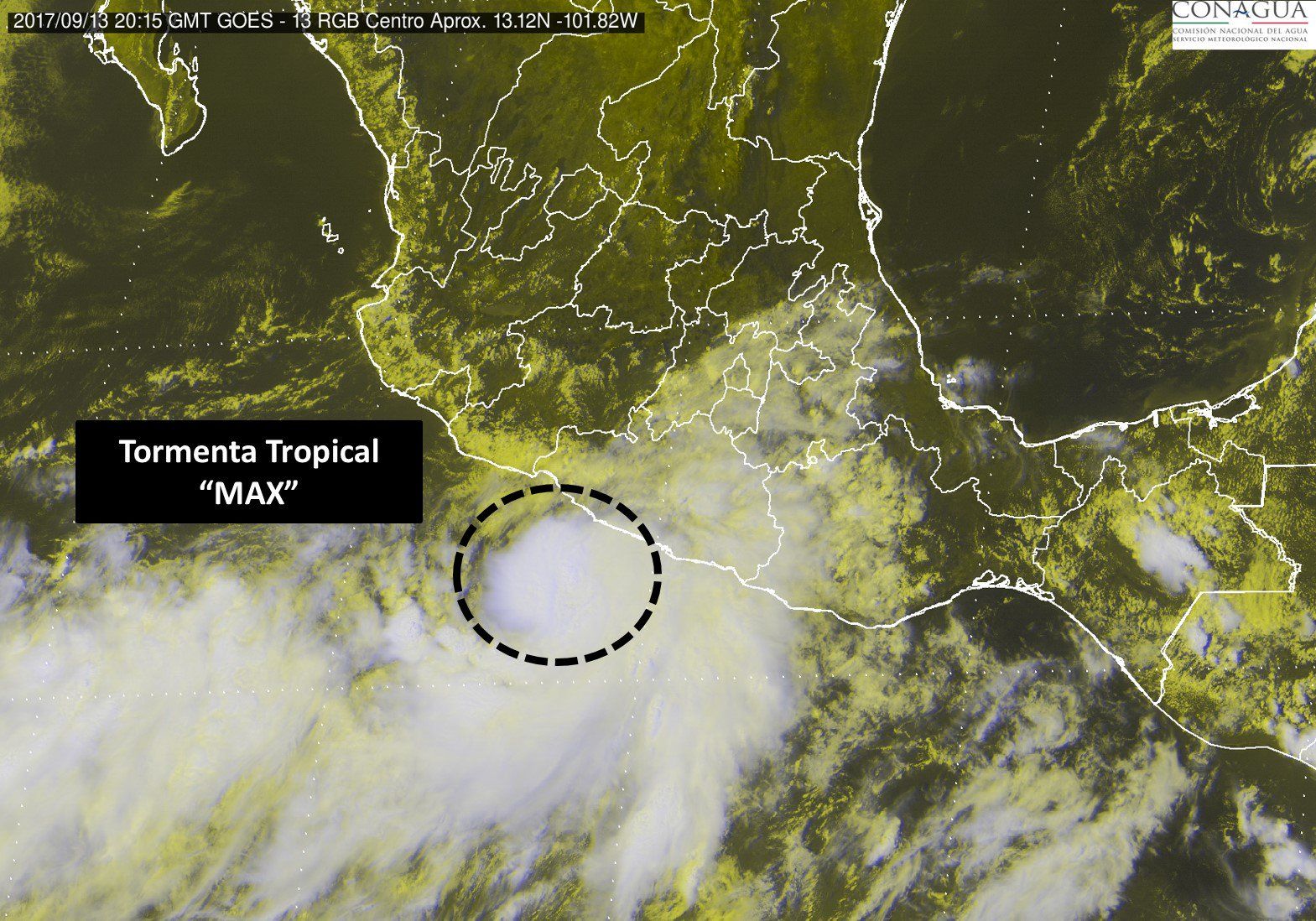 En tan solo unas horas, la depresión tropical 16E aumentó su intensidad para transformarse en la tormenta tropical Max, siendo el fenómeno número 13 en alcanzar dicha categoría en la presente temporada de huracanes en el Pacífico.