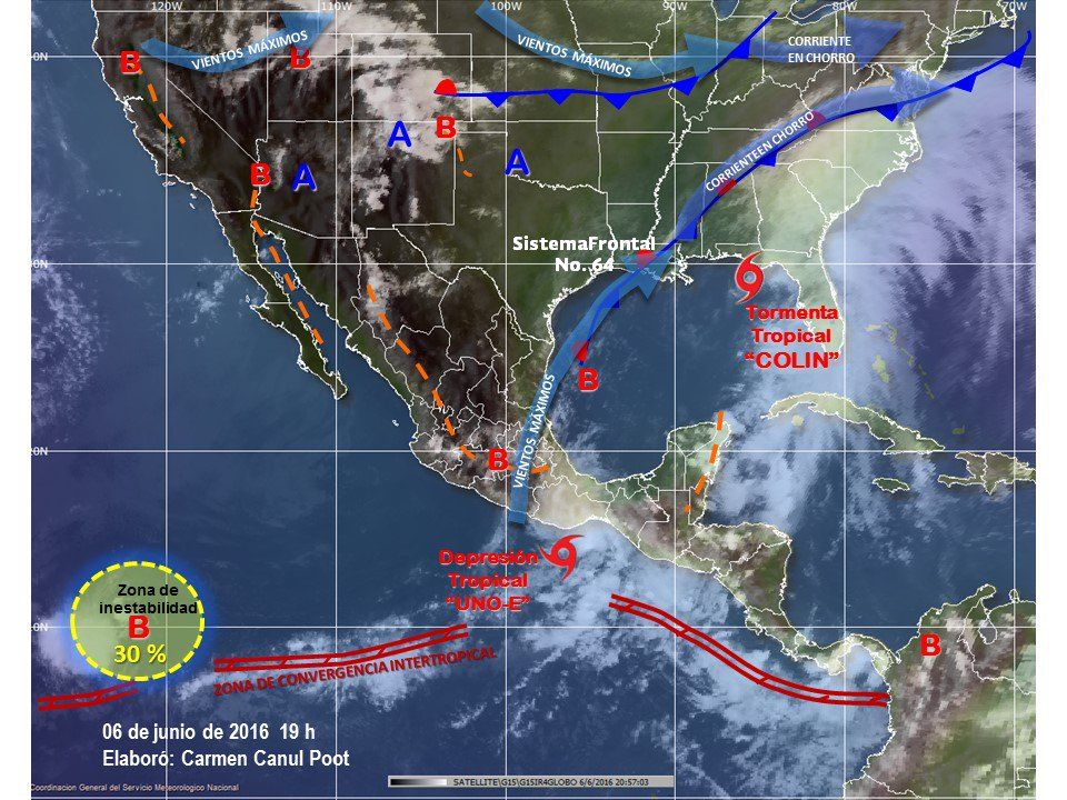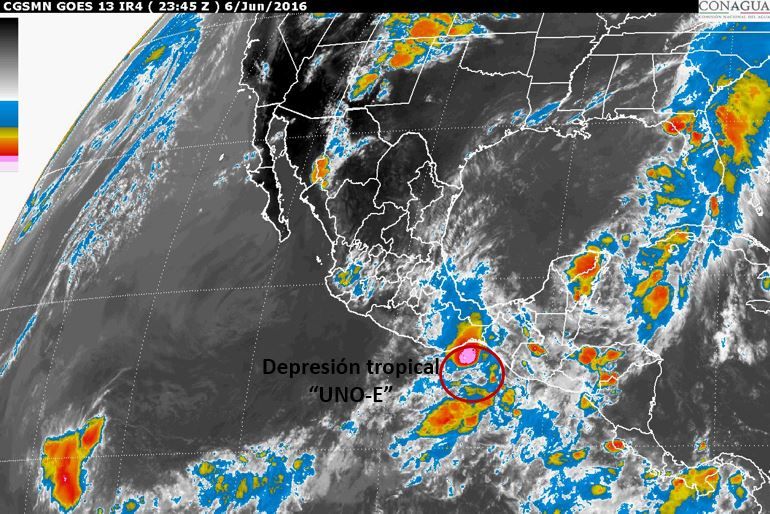 El Servicio Meteorológico Nacional (SMN) informó que esta tarde se formó la depresión Tropical 1-E en el Océano Pacífico, con lo que se convierte en el primer ciclón tropical de la temporada 2016 de esa Costa del país.