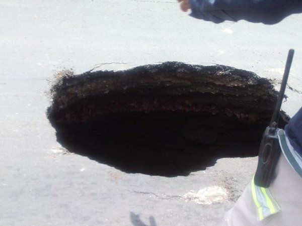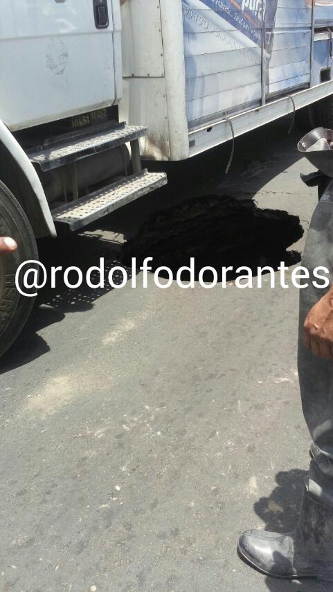 Inclusive, en el mismo socavón, un camión de agua cayó, ocasionando mayores daños a la vialidad. Se cree que las lluvias de los recientes días pudieron haber formado el boquete, aunque la versión no está aún confirmada por autoridades municipales.