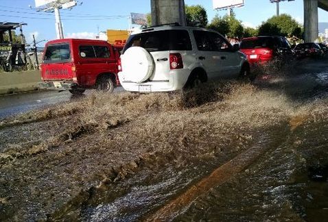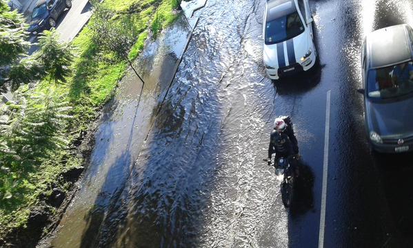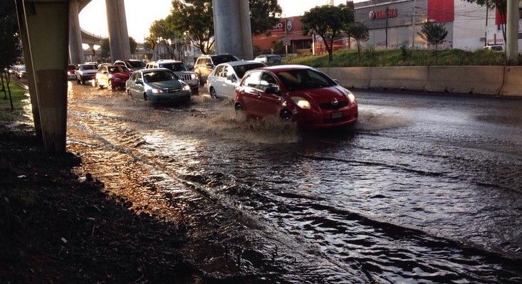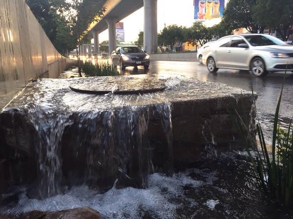 Desde las 6:00 h, una importante fuga de agua está inundando los carriles centrales de Periférico Sur, a la altura de Gran Sur.
