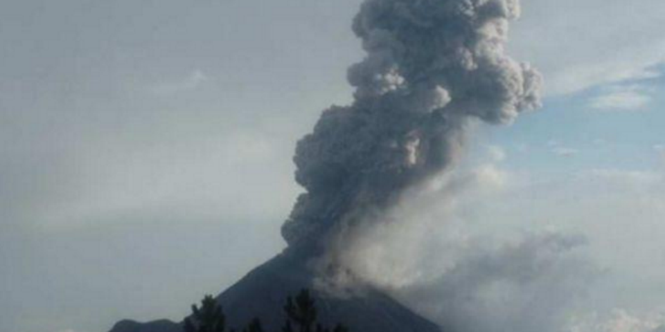 Esta mañana de sábado, el Volcán de Colima emitió una fumarola que alcanzó los 2 kilómetros de altura