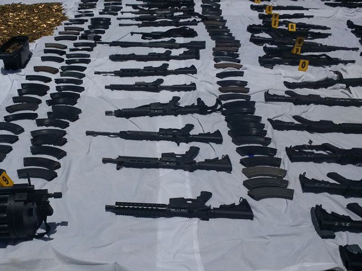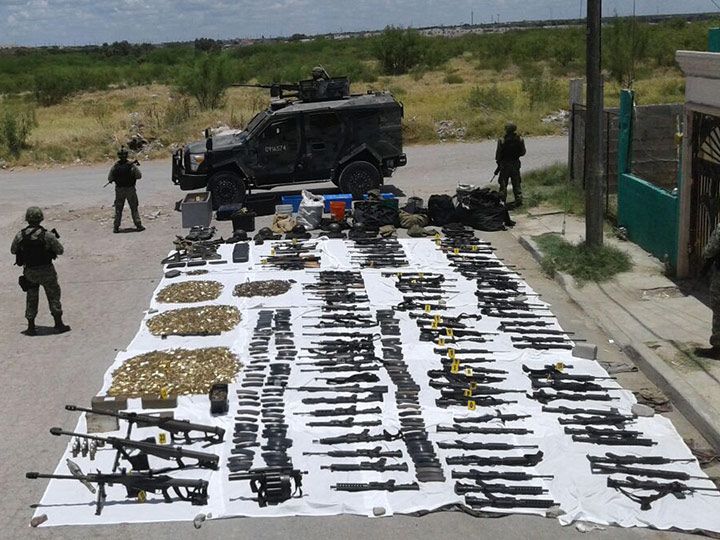La mañana de este viernes la Secretaría de la Defensa Nacional dio a conocer que elementos del Ejército decomisaron un arsenal con armas de diferentes calibres, cargadores, cartuchos y uniformes tipo militar, en un domicilio de la colonia Toboganes en Nuevo Laredo, Tamaulipas.