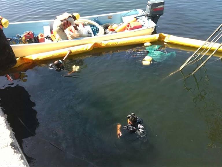 Ante el llamado de auxilio, personal naval acudió al lugar de los hechos donde detectó un derrame de hidrocarburo debido al hundimiento, por lo que colocó una barrera de contención.