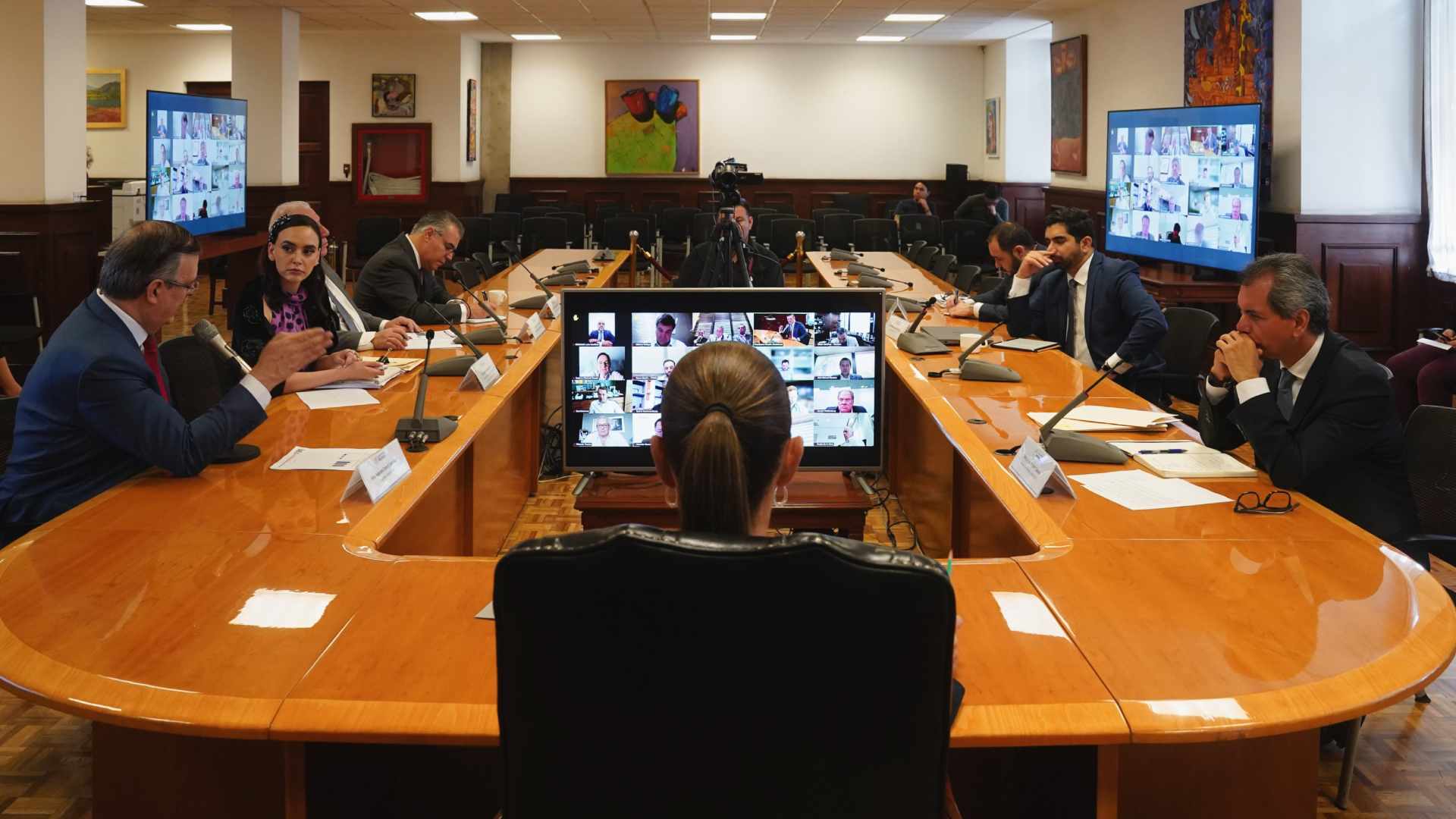 La presidenta Claudia Sheinbaum sostuvo una reunión con empresarios del sector del acero y el aluminio, acompañada por los secretarios de Hacienda, Édgar Amador Zamora, y de economía, Marcelo Ebrard.