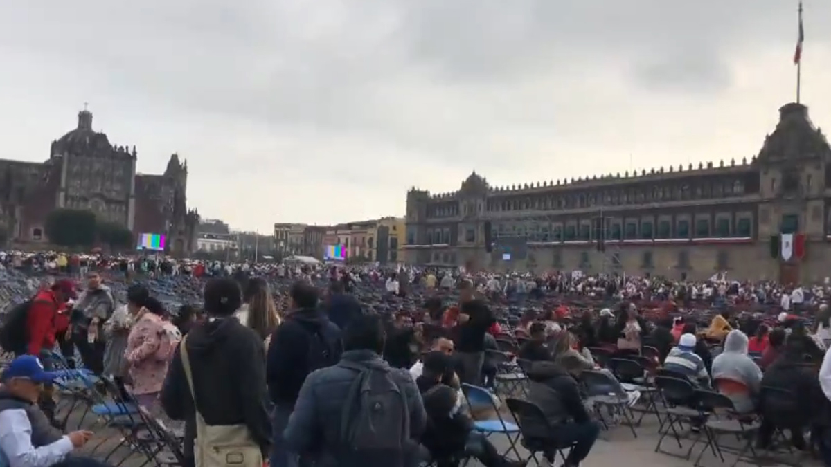 Simpatizantes del presidente Andrés Manuel López Obrador corrieron para alcanzar asiento en el Zócalo capitalino, de cara al sexto y último Informe de Gobierno del primer mandatario.