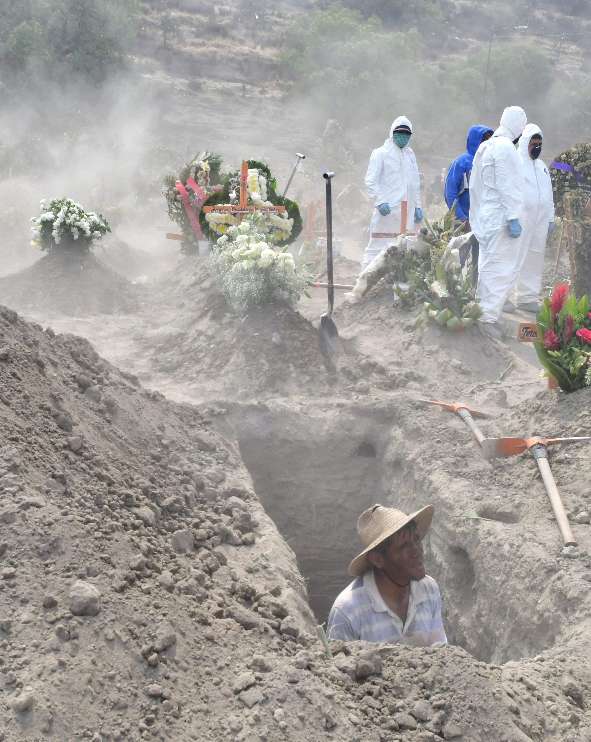 Una hectárea de tierra árida en las faldas del volcán Xico será el lugar de descanso de estos tres difuntos, uno al lado del otro, así como de los centenares que llegaron antes que ellos y que tienen algo en común: murieron este mes de mayo en plena crisis del coronavirus.