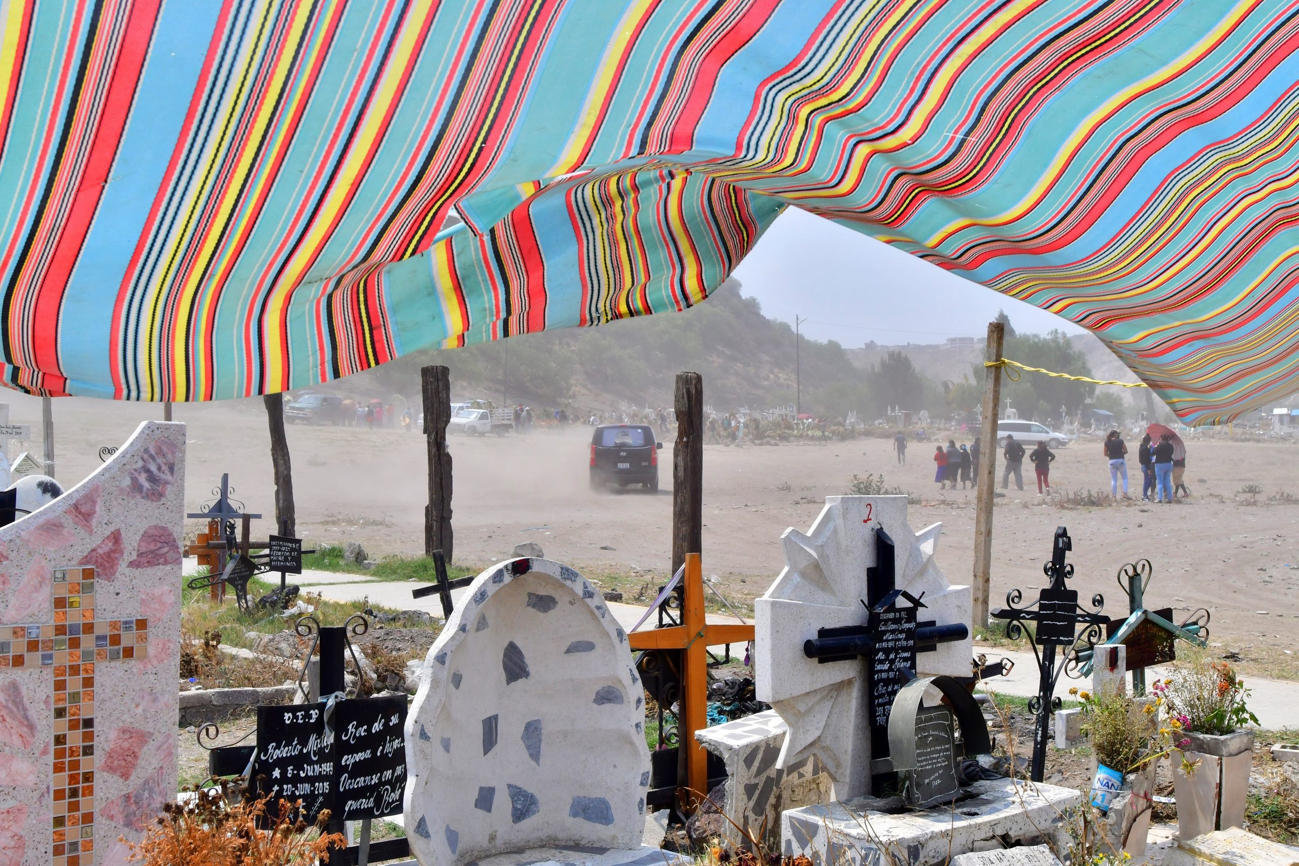 A diferencia del cementerio original, que cumple con la fisonomía de los panteones mexicanos con desgastadas lápidas de colores atrevidos, en el terreno auxiliar las fosas se tapan con montículos de arena, una cruz y algunas flores. No hay tiempo para más adornos.