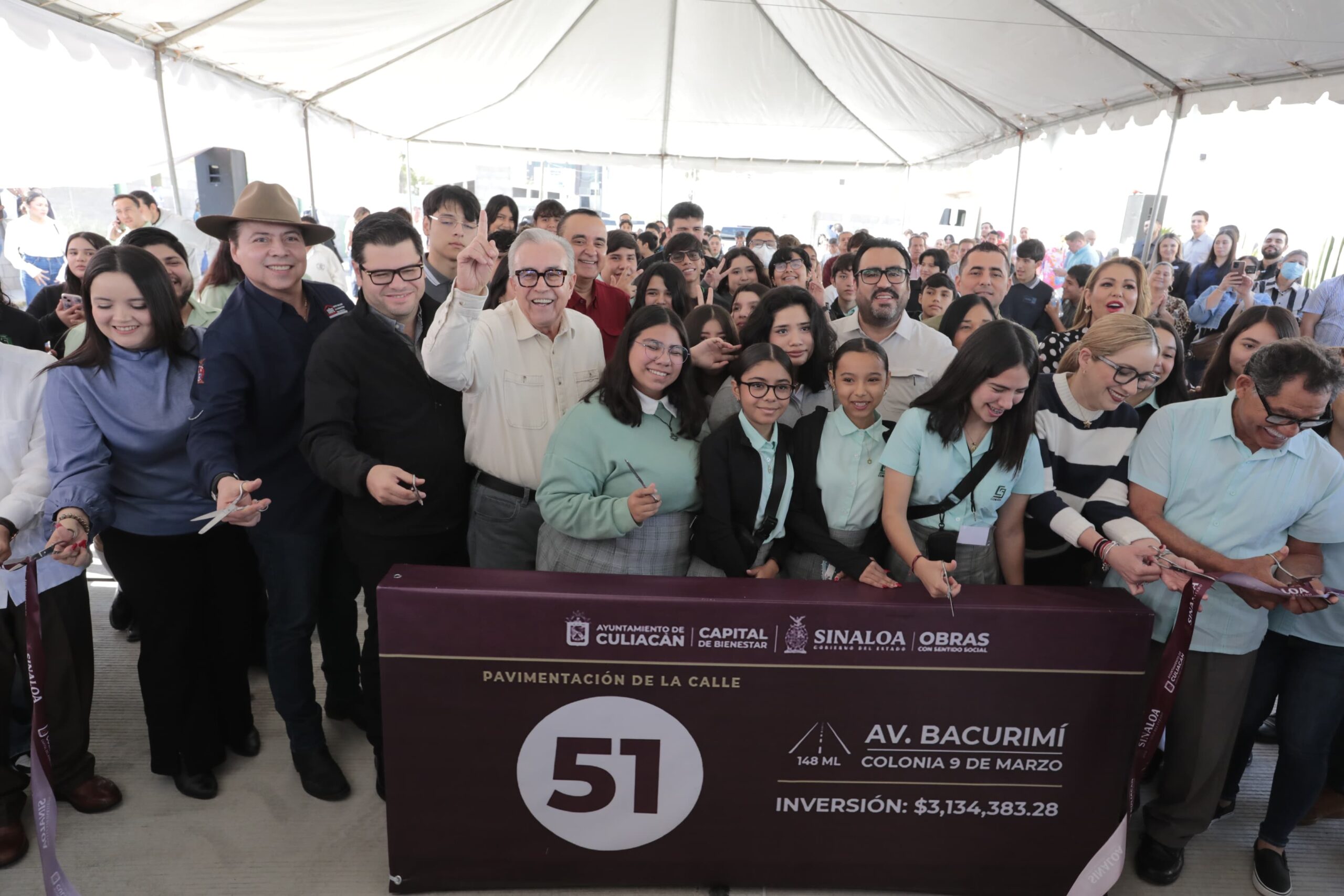 El gobernador entregó la pavimentación de la Avenida Bacurimí de la colonia 9 de Marzo de Culiacán, donde se ubica el COBAES 130.