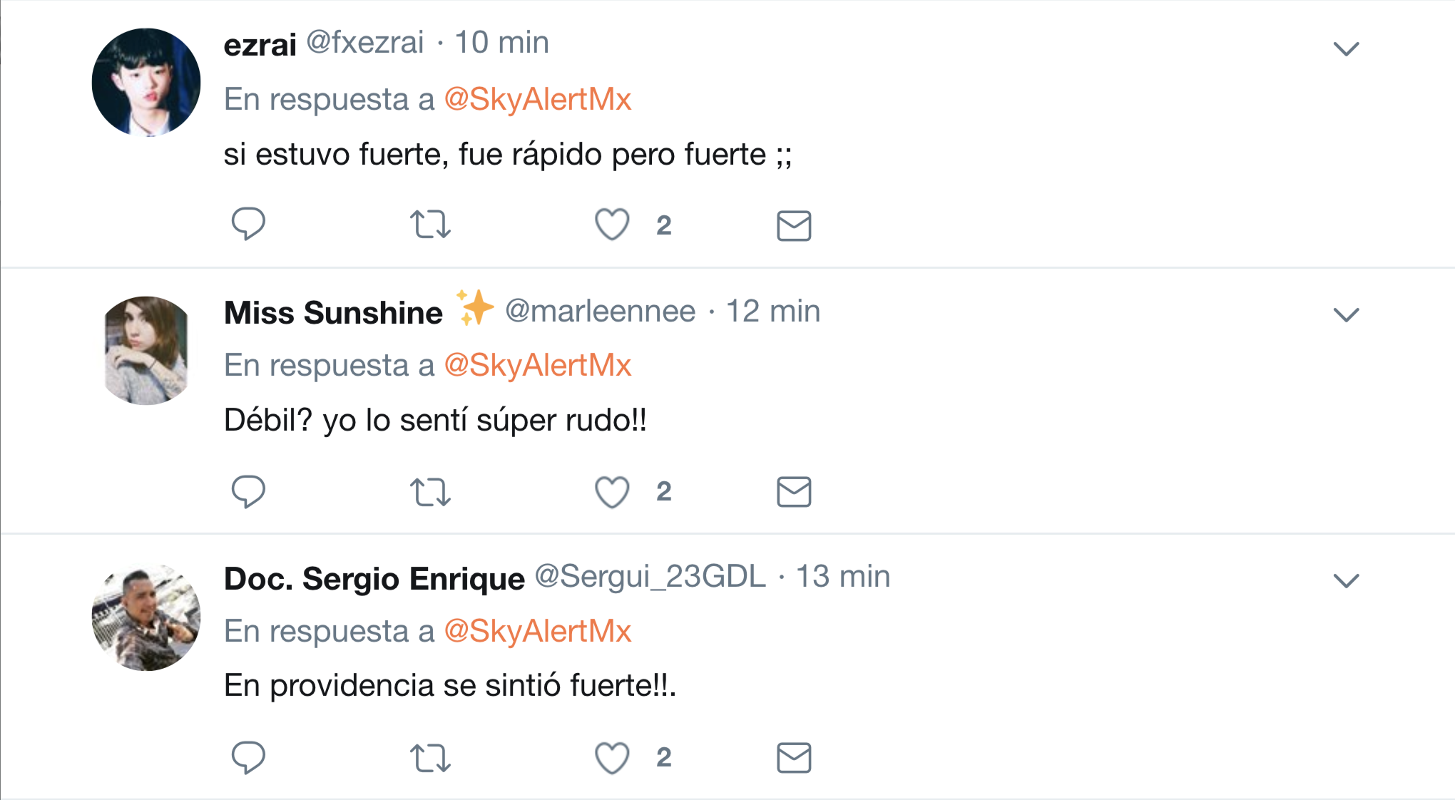 Los usuarios de SkyAlert también reportaron haber sentido en varias zonas de Guadalajara y su zona Metropolitana, como en Zapopan y Tesistán.