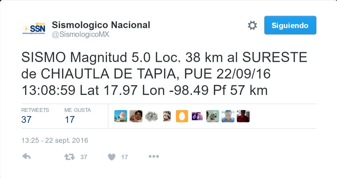 El sismo se percibió en el centro del país luego, se indica que tuvo magnitud preliminar 5.0 con epicentro en Chiautla de Tapia, en Puebla