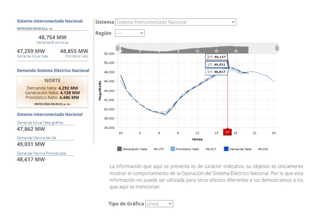 A las 17:00 h se registró el punto más alto de demanda energética en México, con 49 mil 31 MW.