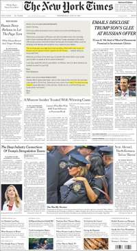 A nivel internacional, algunos de los diarios más reconocidos priorizaron que Donald Trump Jr. aceptó recibir información perjudicial sobre la excandidata presidencial, Hillary Clinton, pese a que supuestamente provenía del gobierno de Rusia, de acuerdo con sus propios correos electrónicos.