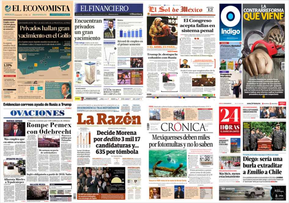 Los principales periódicos de México destacaron este miércoles en sus primeras planas que el comisionado de la Policía Federal, Manelich Castilla Craviotto, consideró que el nuevo sistema de justicia penal significa un gran avance pero es perfectible, como cualquier otro en el mundo.