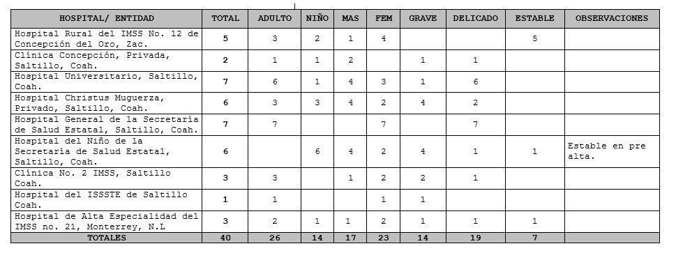 Los lesionados son atendidos en clínicas de Zacatecas, Coahuila y Nuevo León