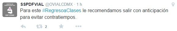 “Para este #RegresoaClases le recomendamos salir con anticipación para evitar contratiempos”, sugirió la Secretaría de Seguridad Pública a los capitalinos.