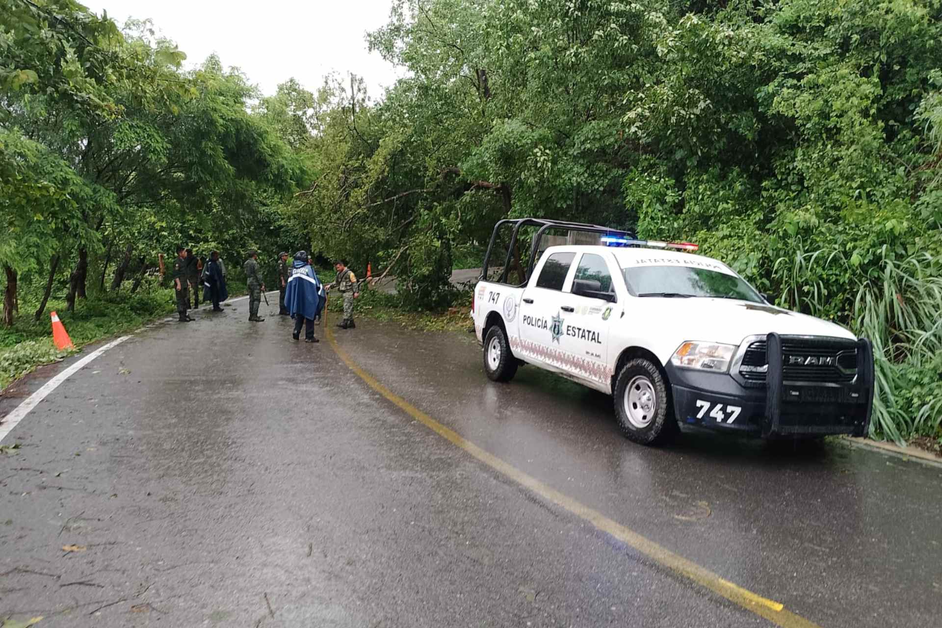 En las carreteras se reportan cinco derrumbes o deslaves, de los que tres están en Acapulco, uno en José de Joaquín Herrera y uno en Tlacoapa, así como dos socavones, uno en Marquelia y otro en Copala.