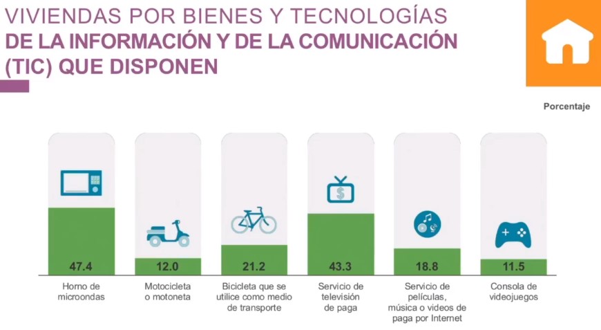 En cuanto a bienes y tecnologías de la información y de la comunicación, aumentó la disposición de horno de microondas, así como los servicios de televisión de paga y de streaming.