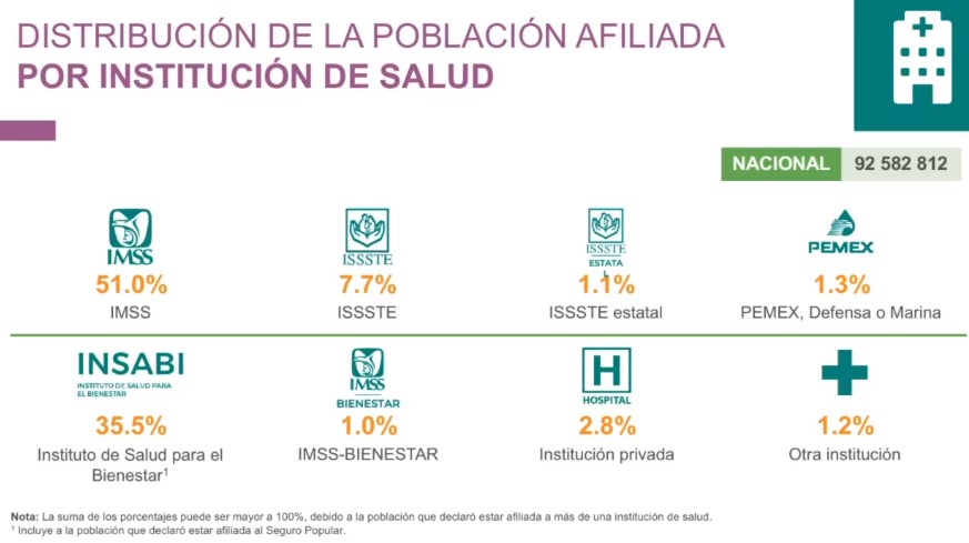 La mayor parte de la población, 51 por ciento, cuenta con IMSS, mientras que el Insabi congrega a 35.5 por ciento.