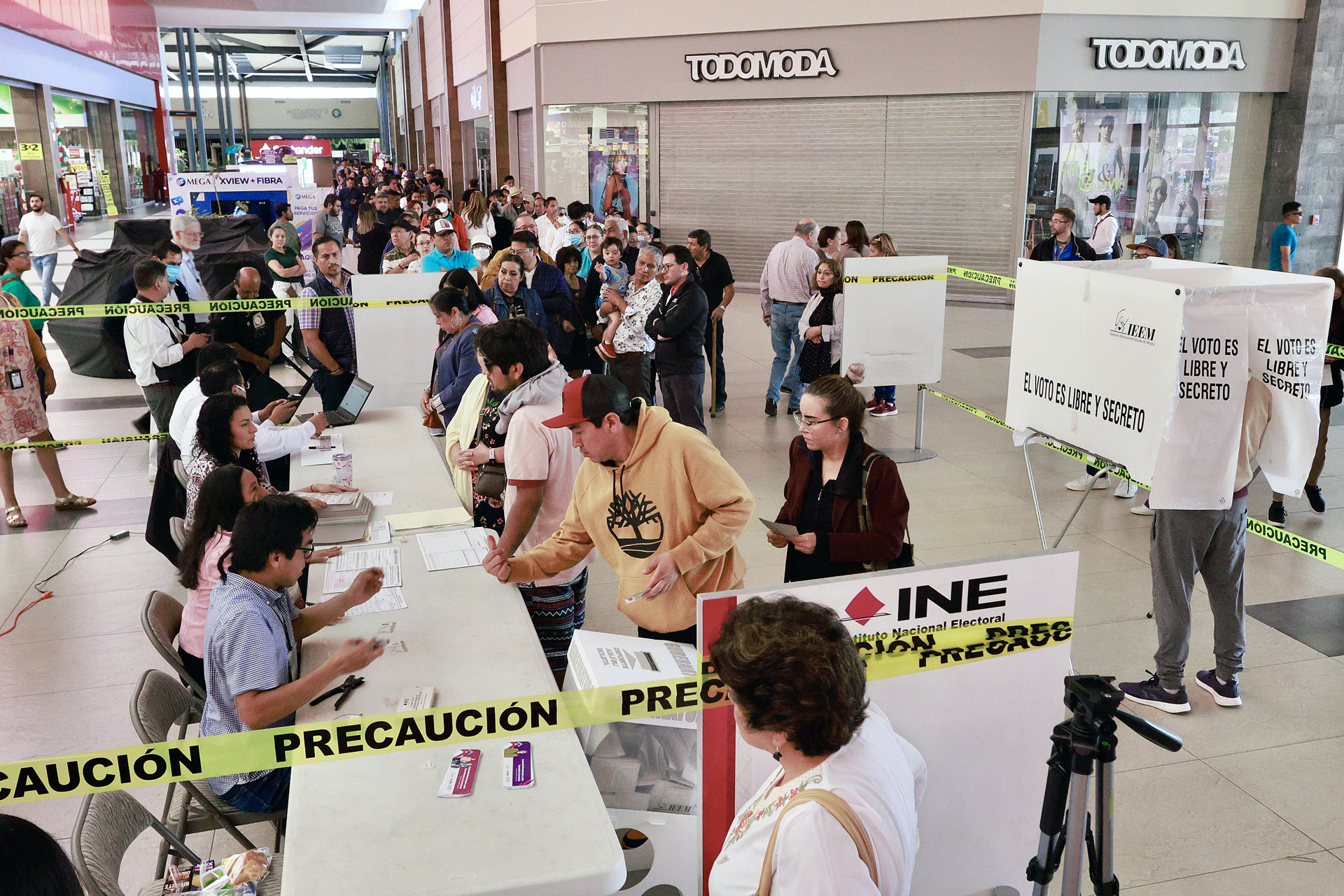 El Instituto Nacional Electoral (INE) informó, pasado el mediodía, que estaban instaladas el 100 % de las 24 mil 493 casillas (mesas de votación), 20 mil 433 casillas en el Estado de México y 4 mil 60, en Coahuila.