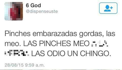 Ocho días después, el 28 de agosto, el joven médico publicó un comentario ofensivo en contra de las mujeres embarazadas donde incluye varios insultos. Las llama gordas, que va orinar encima de ellas y que las odia.
