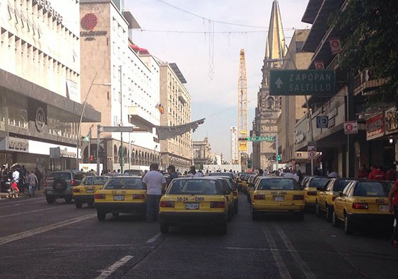 En punto de las 09:30 h taxistas comenzaron la protesta en la Zona Metropolitana de Guadalajara, Jalisco, en contra del servicio de Uber, su competencia directa y ante la posible regularización por parte del Legislativo.