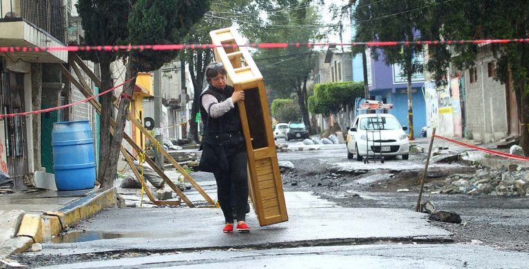 A pregunta expresa, Tinoco afirmó que tampoco ha ido gente de protección civil del gobierno capitalino. La situación se replica en la calle Gitana, en la casa de Rosa María Rosario Sandoval, la cual se halla a la misma altura de la grieta de Pingüino. Explicó que su construcción se agrietó y el suelo se deformó de tal forma que el zaguán se atora a la hora de abrir. Como las vecinas de Pingüino, se quejó de que no la ha visitado nadie de Protección Civil, y añadió que el servicio de agua sigue sin restablecerse y aunque ya recibe agua, solo le cae “un hilito”.