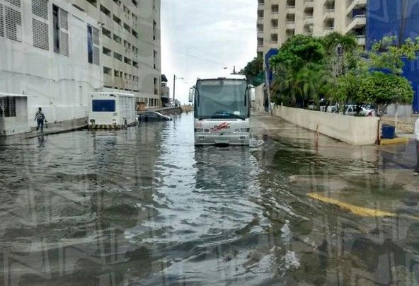 El alto oleaje, causado por la tormenta tropical Carlos, ocasionó que el agua llegara a la zona turística de Acapulco y dejó varados dos autobuses de pasajeros y un auto compacto, informó Raúl Miliani Sabido, secretario de Protección Civil en Guerrero.
