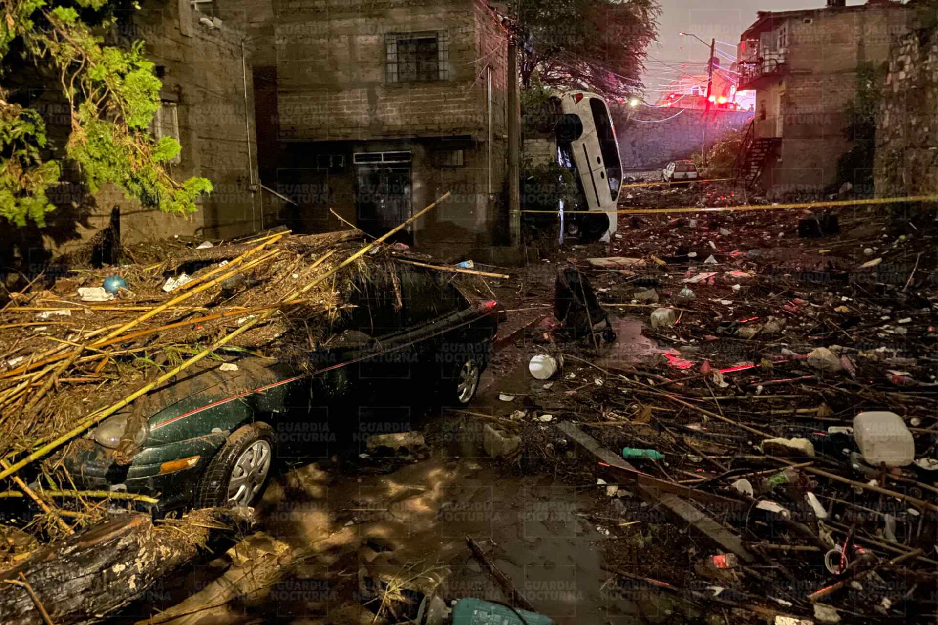 La fuerte precipitación ocasionó que se desbordará un canal que inundó, arrastrando varios vehículos, muebles y basura.