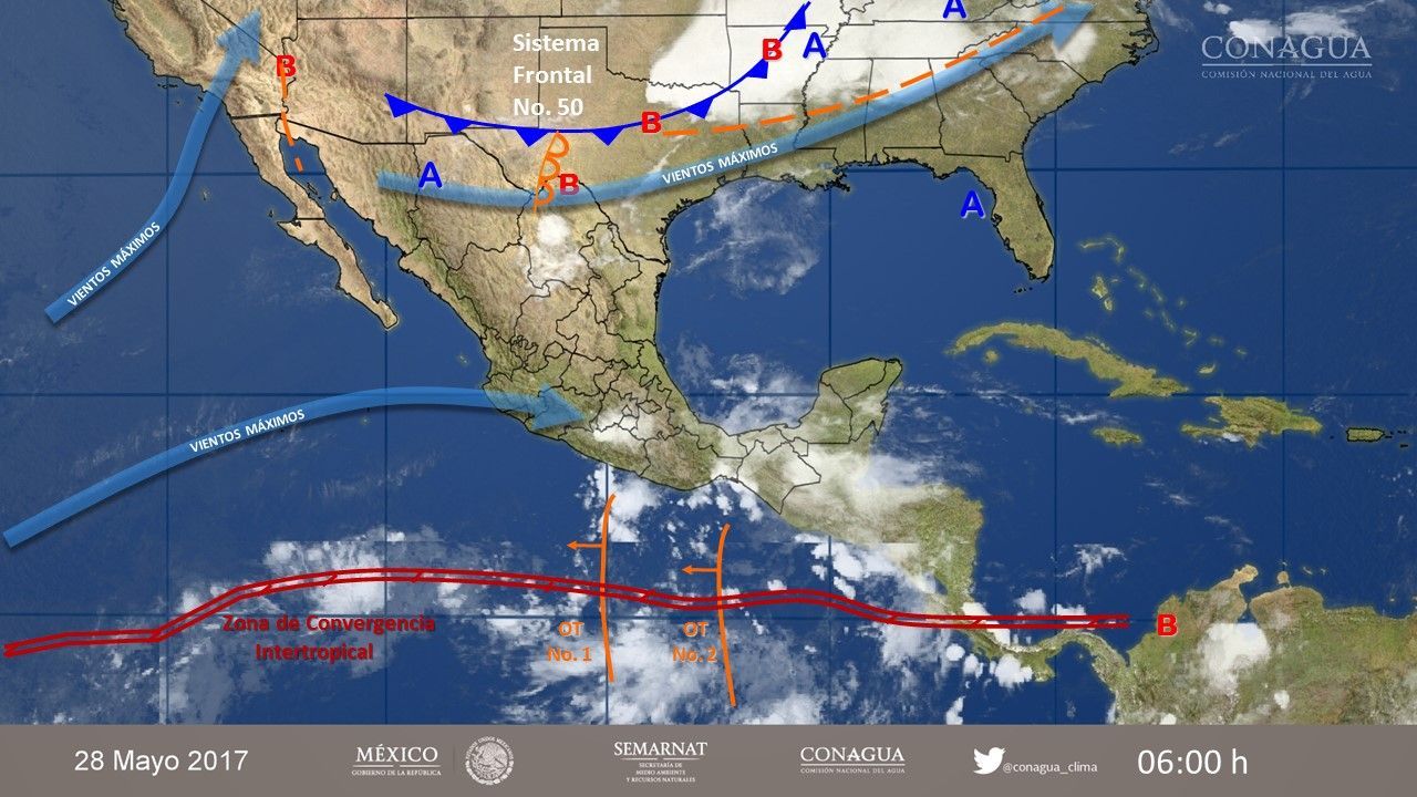 El mal tiempo se deberá al efecto de la onda tropical número 2, así como al efecto de un nuevo frente frío en territorio nacional