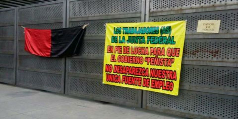 Cerca de 300 trabajadores de la Junta Federal de Conciliación y Arbitraje (JFCA) de la zona de Azcapotzalco iniciaron un paro de labores la mañana de este jueves como protesta por la reforma constitucional en materia laboral que provocará la desaparición de estas entidades para convertirse en juzgados, lo que provocaría el despido de de cinco mil personas.