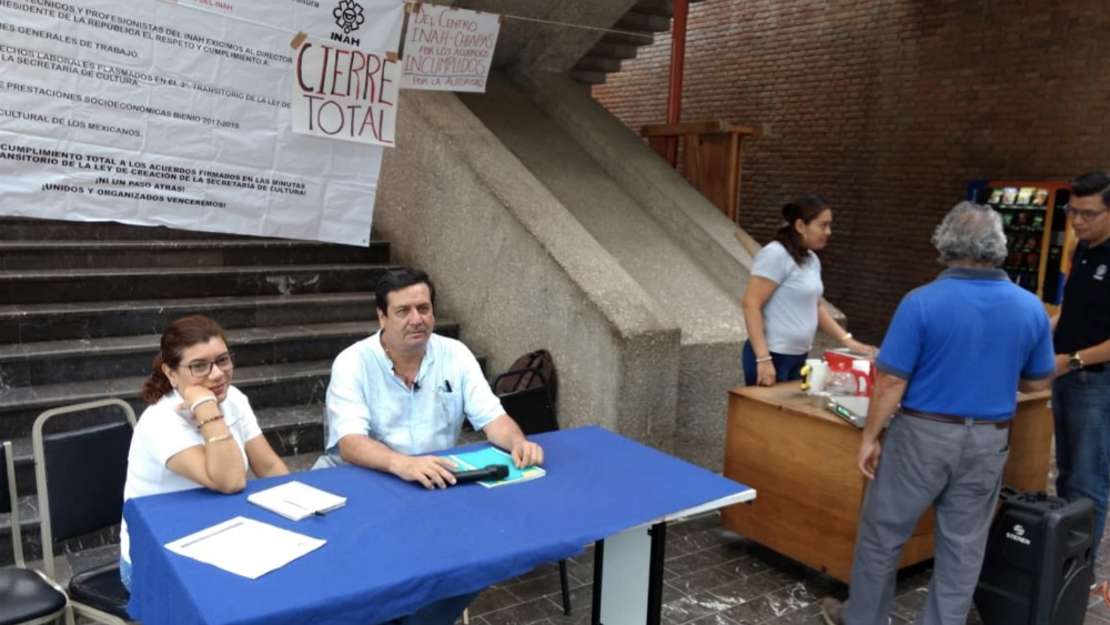 Trabajadores del Instituto Nacional de Antropología e Historia (INAH) en Chiapas demandaron mejores condiciones laborales