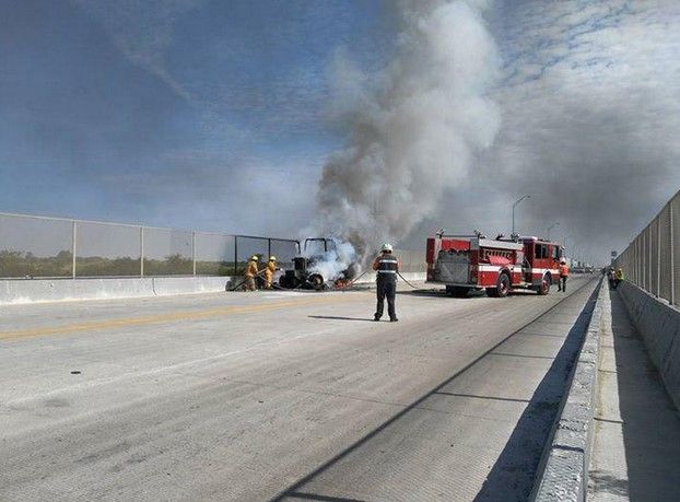 Autoridades cerraron el puente internacional Reynosa-Pharr, después de que se registró el incendio de un tractor, en el lado que viene de Estados Unidos a México.