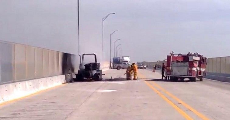 A las 11:10 h, el puente internacional fue reabierto a la circulación, después de que el incendio, provocado por un corto circuito en el tractor, fue sofocado.
