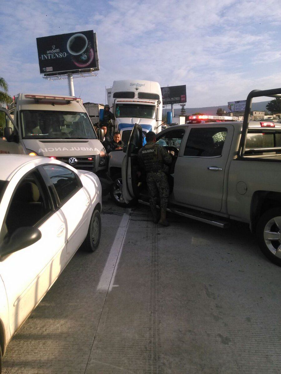 En el libramiento de la autopista Cuernavaca-Acapulco, un tráiler impactó contra un par de vehículos de la Secretaría de Marina (SEMAR) y tres vehículos particulares, donde dos oficiales resultaron heridos en el percance.
