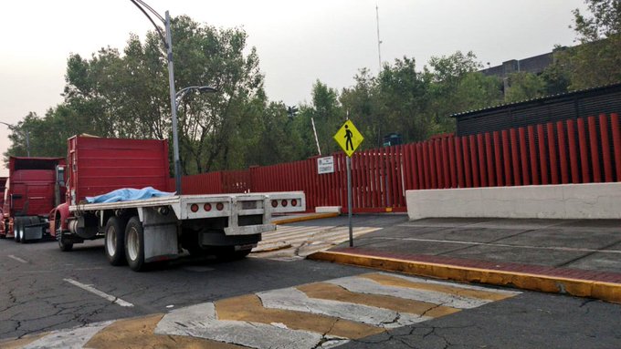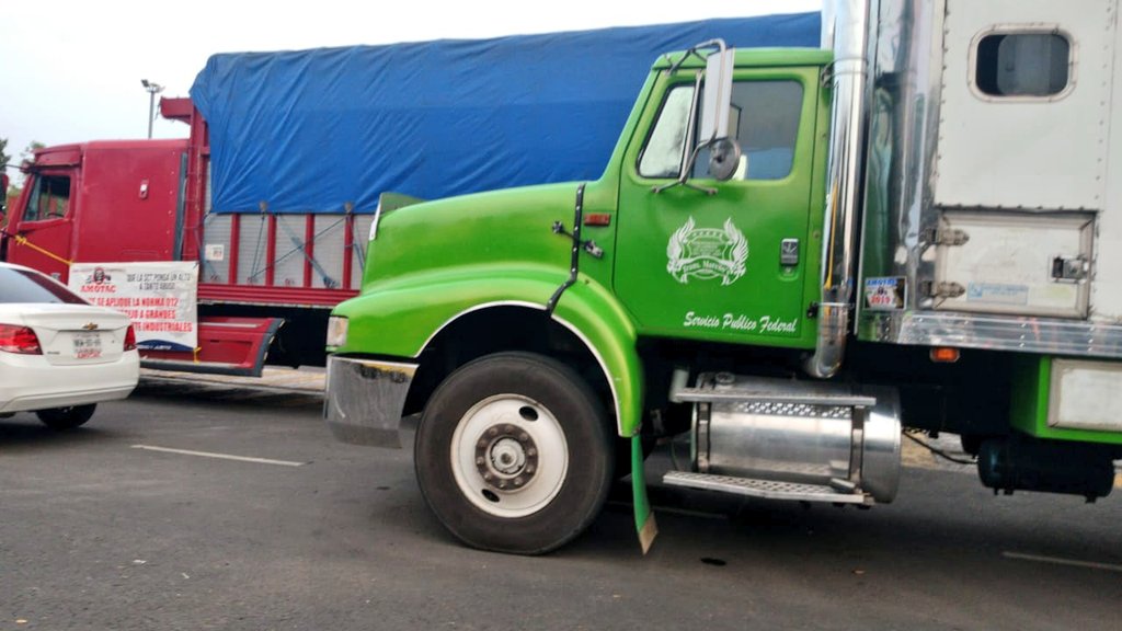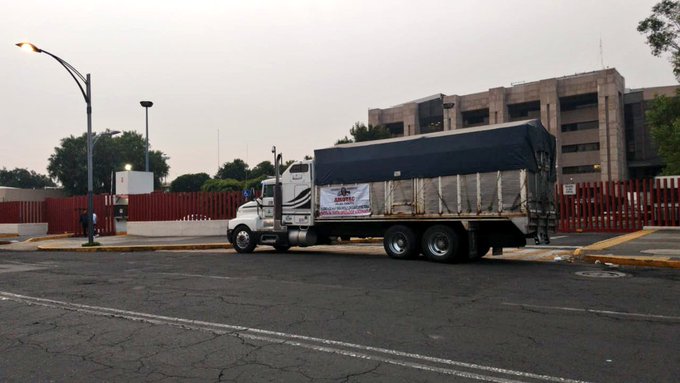 El contingente llegó al Palacio Legislativo de San Lázaro a bordo de camiones de carga en los que colgaron mantas con frases como “Que la SCT ponga un alto a tanto abuso” y “No más cobros excesivos”.